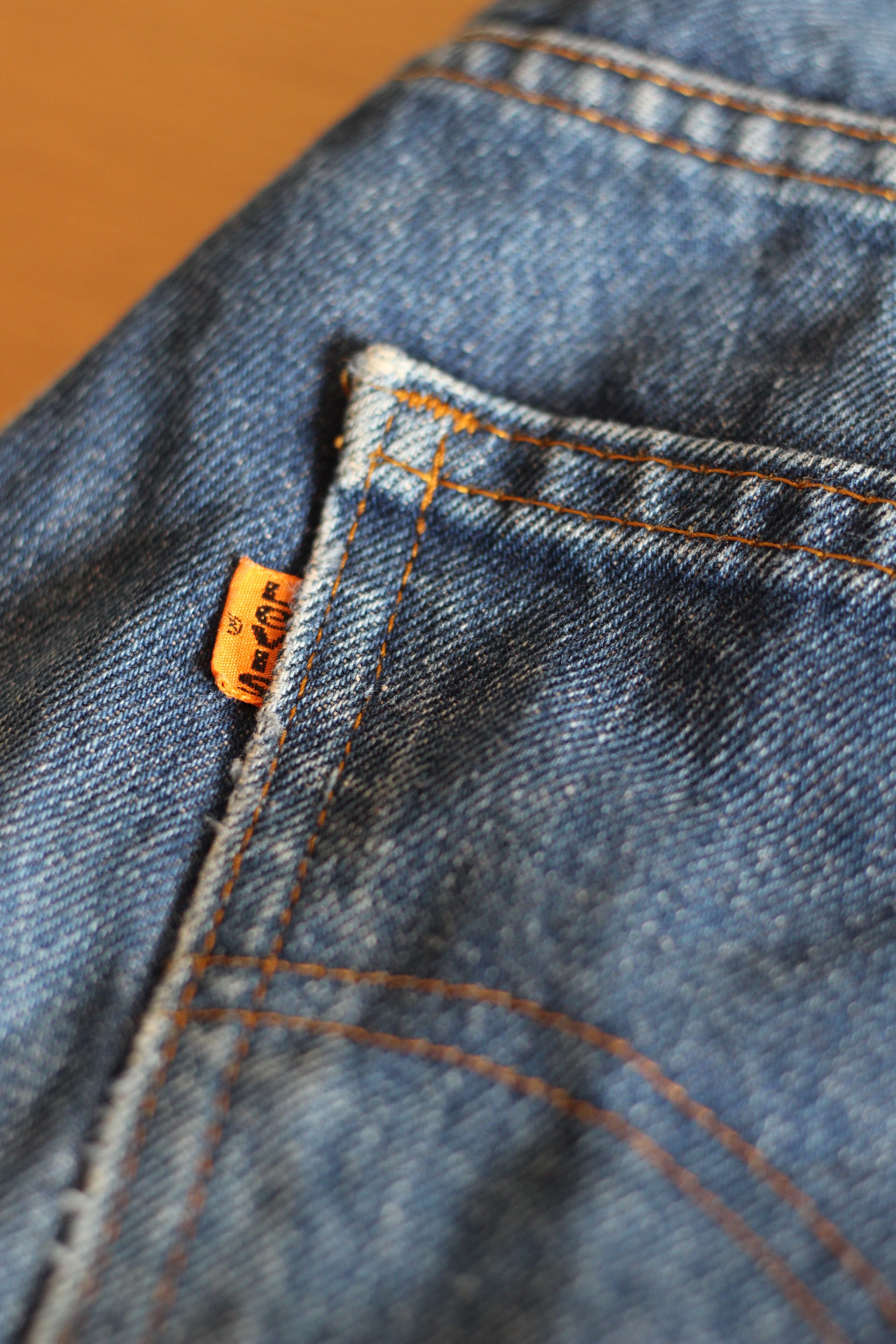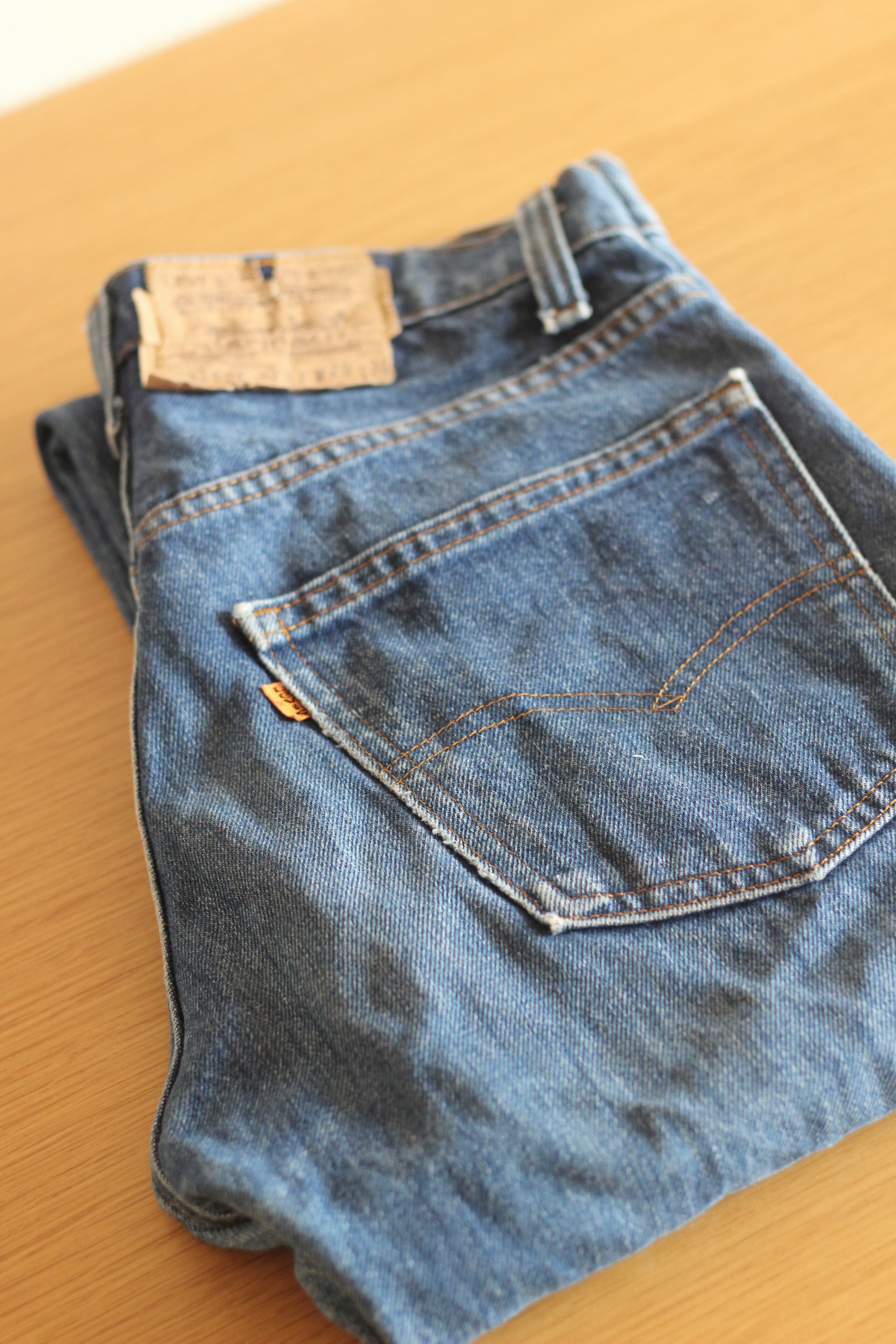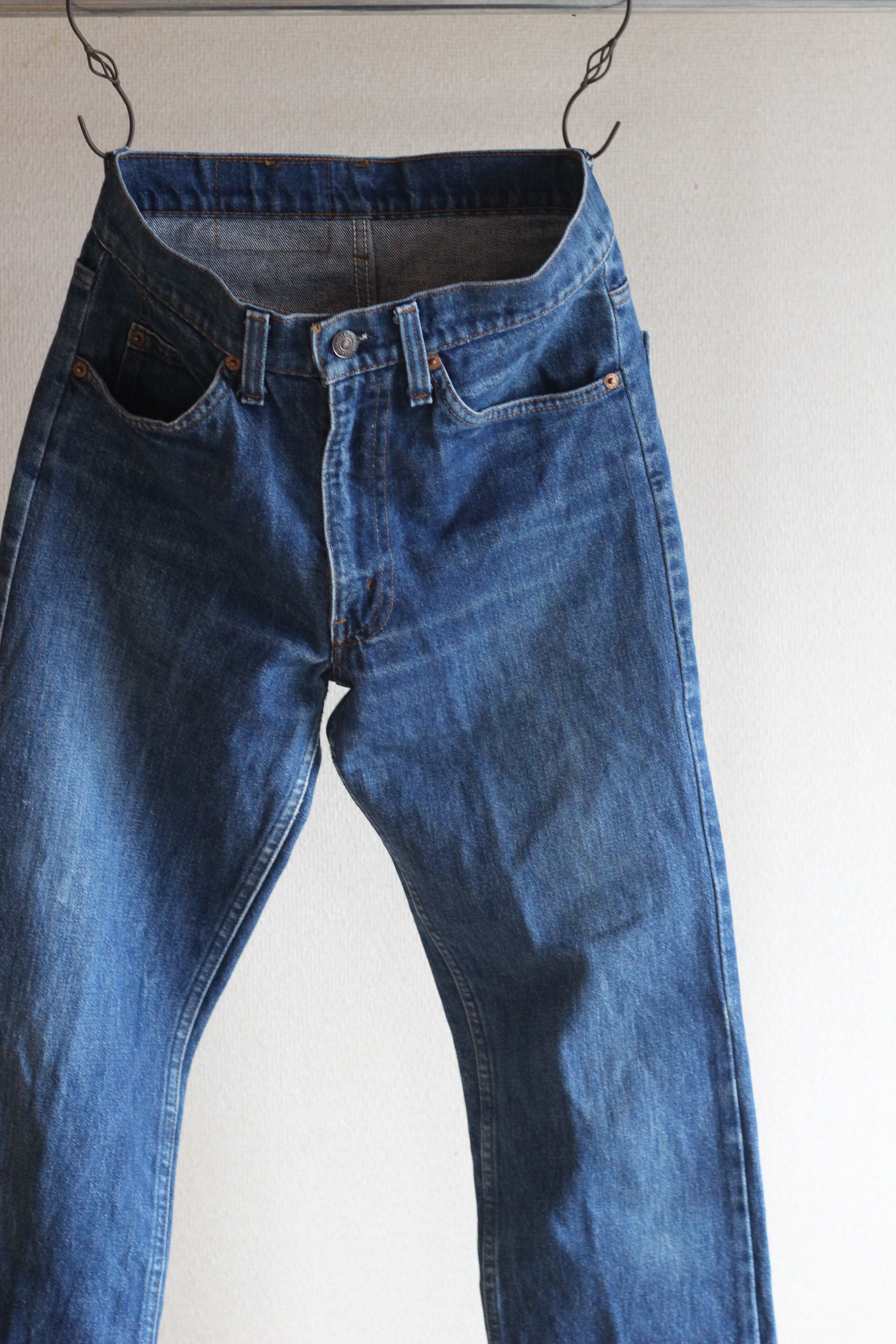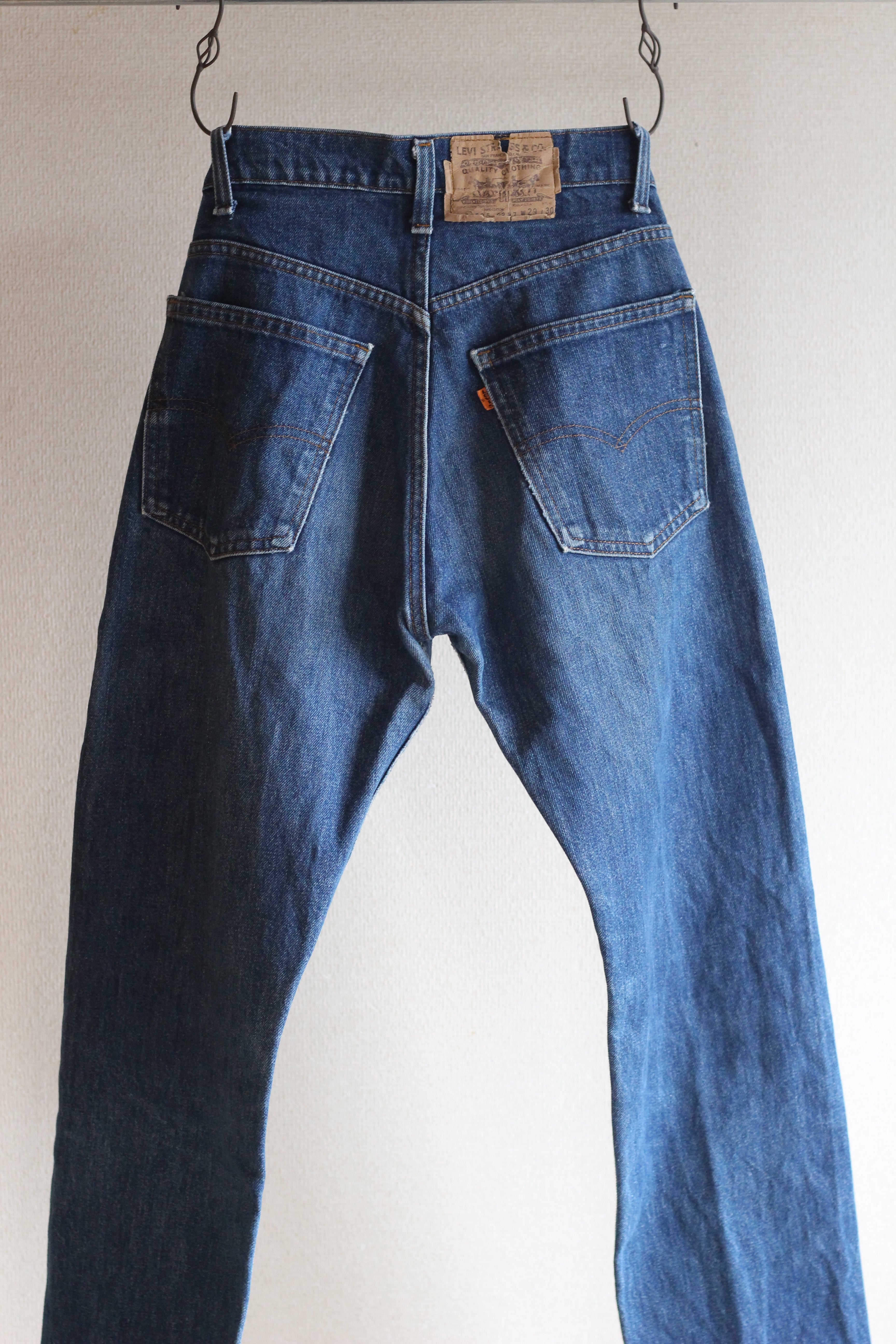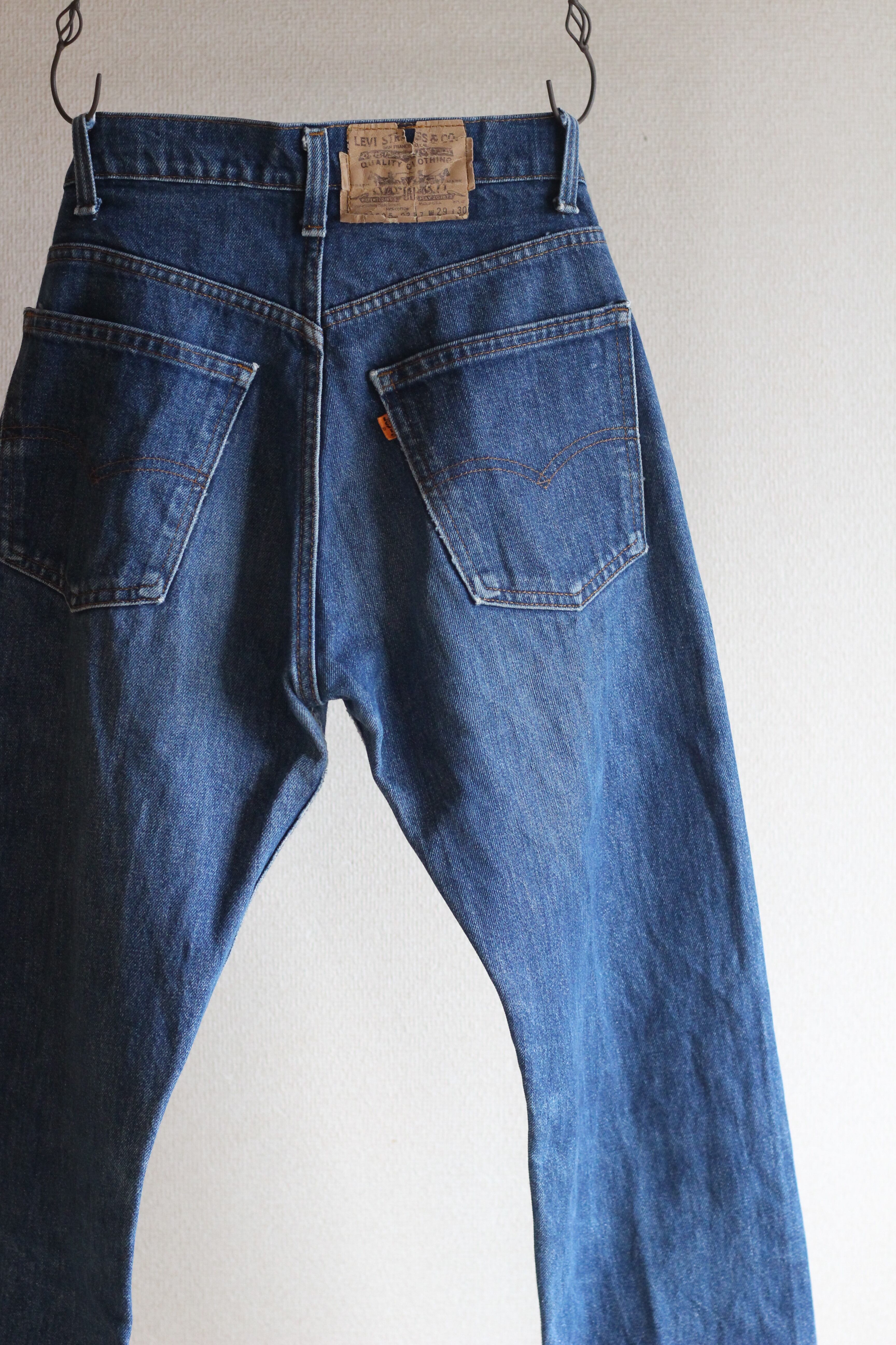 こちらは80年代にアメリカで製造されたオレンジタブモデルで501と比べ若干細身のテーパードストレートが特徴です。