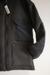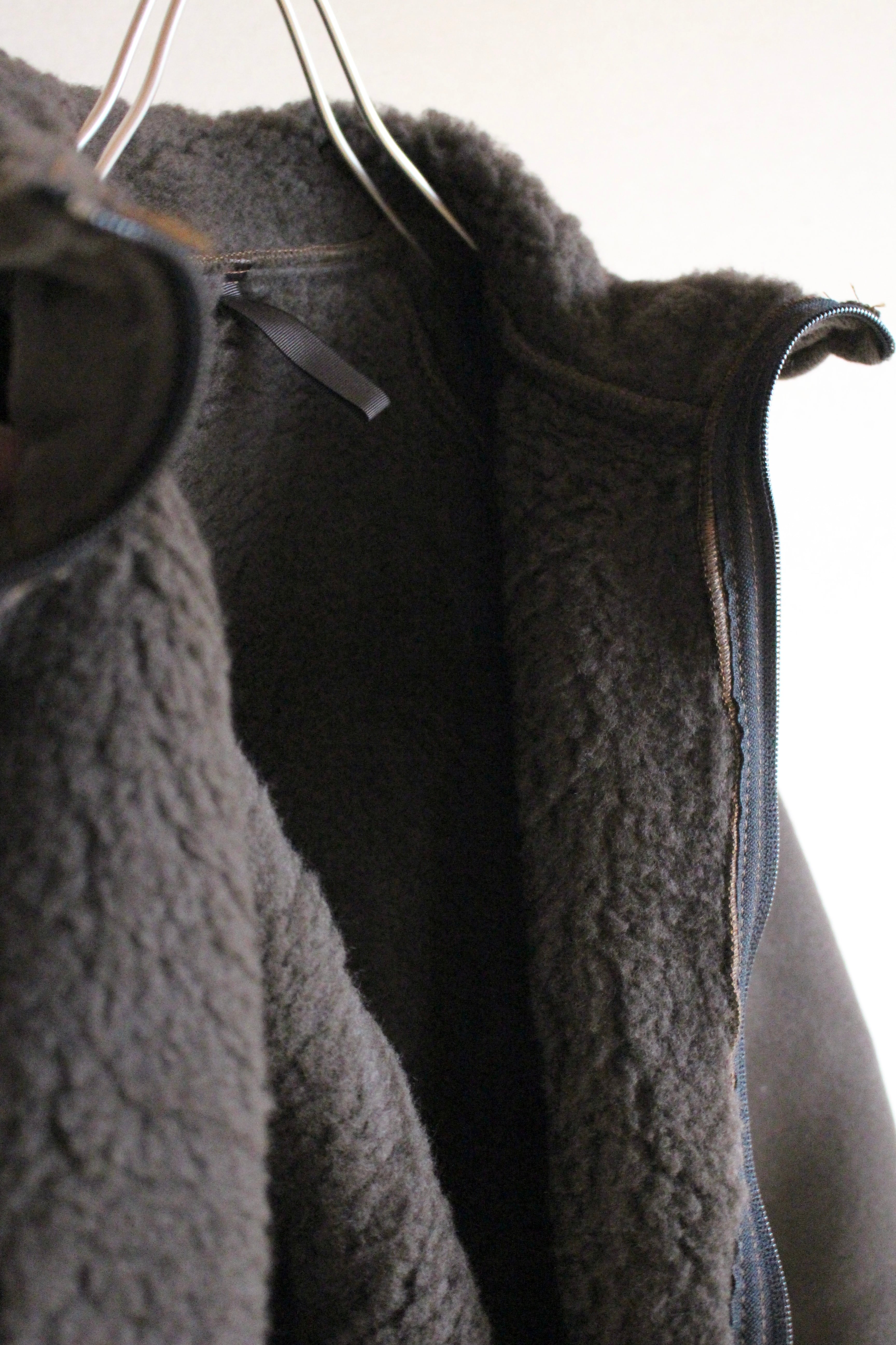 保温性に優れた肉厚のフリースパイル・補強の為につけられた肩と肘のパッチ・胸に取り付けられた2つの大きなフラップポケットと機能的なパーツが都会的且つ自然的なデザインになっています